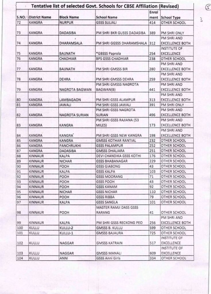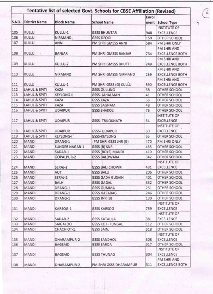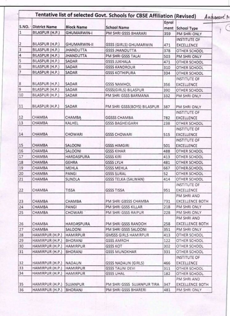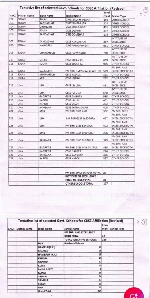 हिमाचल प्रदेश सरकार ने शिक्षा क्षेत्र में बड़ा कदम उठाते हुए प्रदेश के 229 सरकारी स्कूलों को केंद्रीय माध्यमिक शिक्षा बोर्ड (CBSE) से एफिलिएशन की मंजूरी दे दी है। शिक्षा विभाग ने इन स्कूलों की सूची जारी कर दी है।