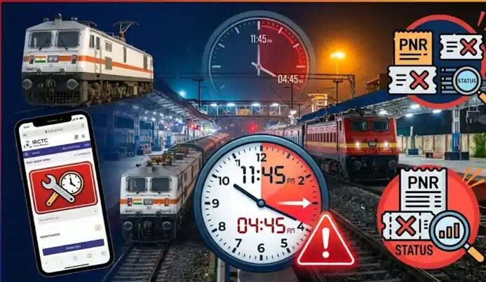 दिल्ली में 26 मार्च 2026 की रात 11:45 बजे से 27 मार्च की सुबह 4:45 बजे तक लगभग 5 घंटे के लिए रेलवे की सभी यात्री सेवाएं प्रभावित रहेंगी। इस दौरान ऑनलाइन और काउंटर टिकट बुकिंग, टिकट कैंसिलेशन, PNR स्टेटस चेक, ट्रेन चार्ट और तत्काल टिकट सेवाएं सभी बंद रहेंगी। रेलवे ने इसकी जानकारी सिस्टम मेंटेनेंस और तकनीकी अपग्रेड के कारण दी है।
