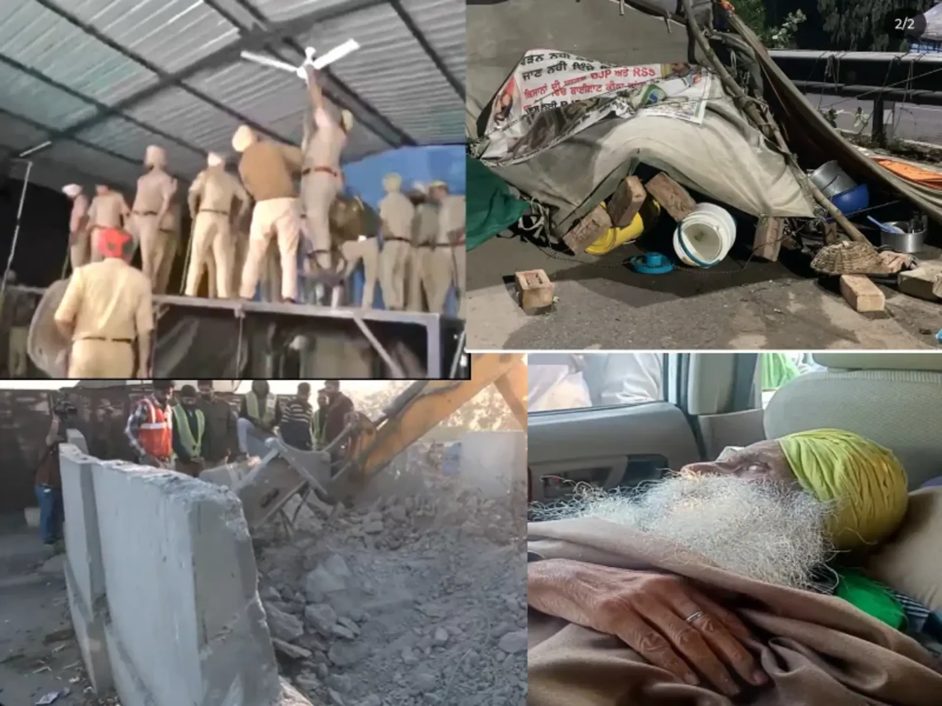 पंजाब और हरियाणा के शंभू और खनौरी बॉर्डर पर बुधवार को देर शाम पंडजाब पुलिस ने किसानों को प्रदर्शन स्थल से हटा दिया था. जिसके बाद से यहां पर सुरक्षा कड़ी कर गी गई है. किसानों द्वारा बनाए गए ढांचों को यहा स हटा दिया गया है. जिसके बाद पुलिस ने किसानों के मंच पर बुलडोजर चला दिया. लेकिन इसके बावजूद भी यहां पर किसान सैंकड़ों की संख्या में जुटे हैं.