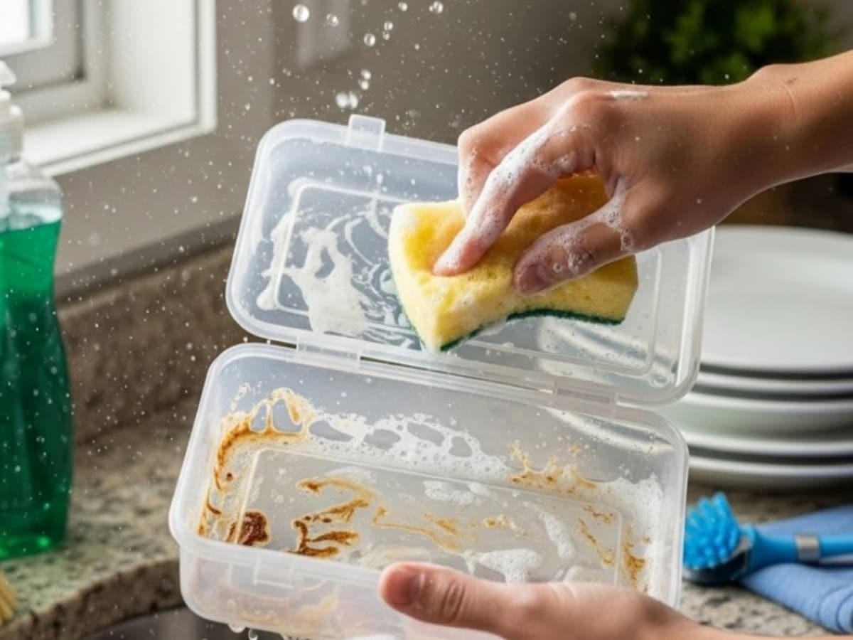 हल्के दागों के लिए सबसे सरल तरीका है। टिफिन में गर्म पानी डालें, कुछ बूंदें डिश लिक्विड मिलाएं और 15 मिनट तक भिगोकर रखें। इसके बाद धोने पर तेल और मसाले के दाग ढीले पड़ जाते हैं।